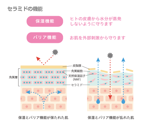 セラミド量が減少すると肌の乾燥や肌荒れを起こします。