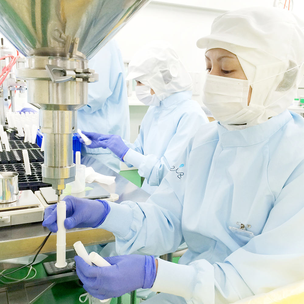 バルク製造後、充填機を通した後のバルクも再度検査します。