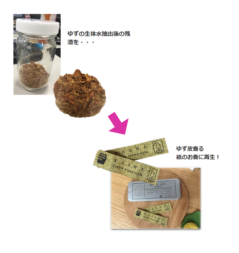 (公財)石川県産業創出支援機構の皆様に農作物のご協力いただき、植物ならなんでも抽出可能という特性を生かし、さまざまな植物で試行錯誤を繰り返しました。留出した植物生体水での化粧品の開発や、留出時にできる残滓を使った地元の高校生とのコラボ商品づくりへの協力など、地域貢献活動を行っています。
